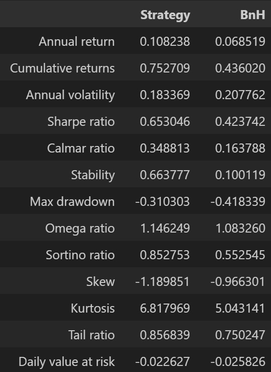Theo quan điểm của mình, chỉ báo này có thể chấp nhận ở mức “tạm được” với performance tốt so với benchmark và có thể đưa vào để sử dụng là feature cho 1 model trading lớn hơn.